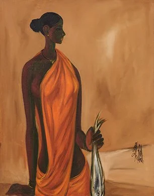 Inspired in part by the pioneering modernist Amrita Sher-Gil, Prabha set out to do something deliberate. She once said she wanted to paint the trauma and tragedy of women. Her figures were tall, solemn, often alone, and reflected that purpose.